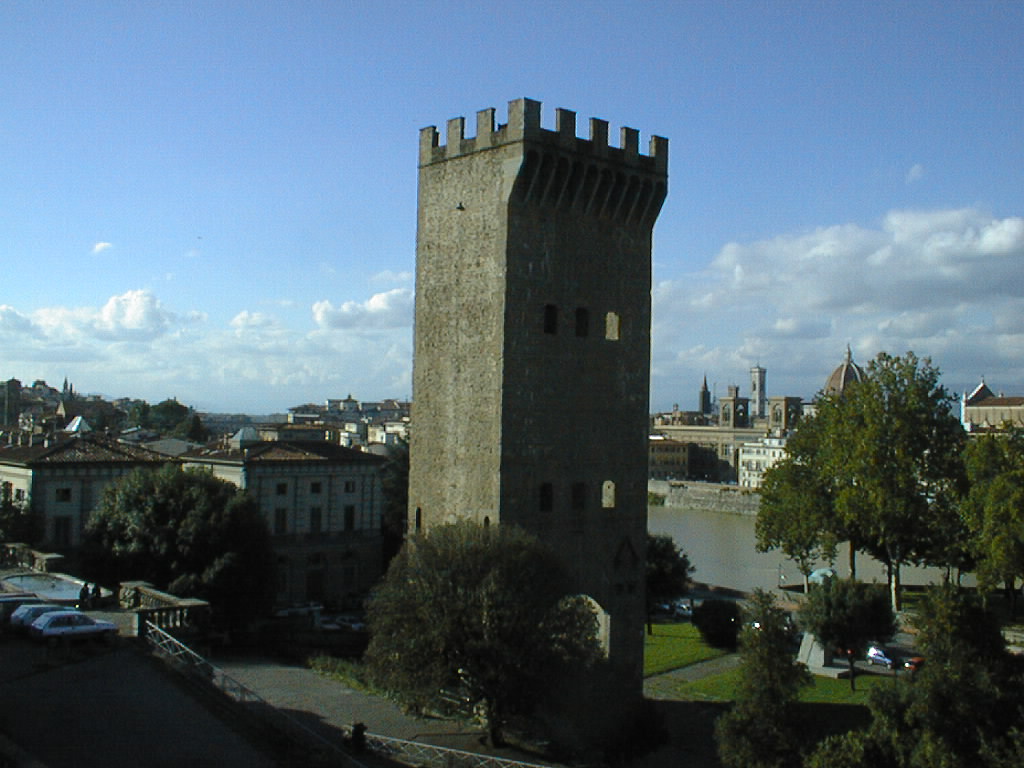 The Arno stretches upriver to the east. The first
