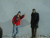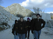 Our group, upon arrival, steps out onto the cold windswept quarry