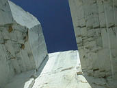 The sparkling white quarry walls loom some 200+ feet overhead.