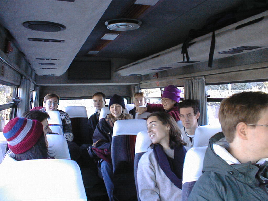 Our 16-person bus, slightly bigger than a Chevy Suburban. Clockwise,