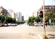 ++ A view of the street outside our apartment building. As another sign of Italian reliability, one bus is stalled in the street, while another bus approaches. |