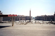 ++ Walking from the Metro, St. Peter's Basilica finally appears beyond the cafes, souvenir shops, and gelato trucks. Alas, in preparation for the year 2000 Jubilee, the entire edifice was under restoration. |