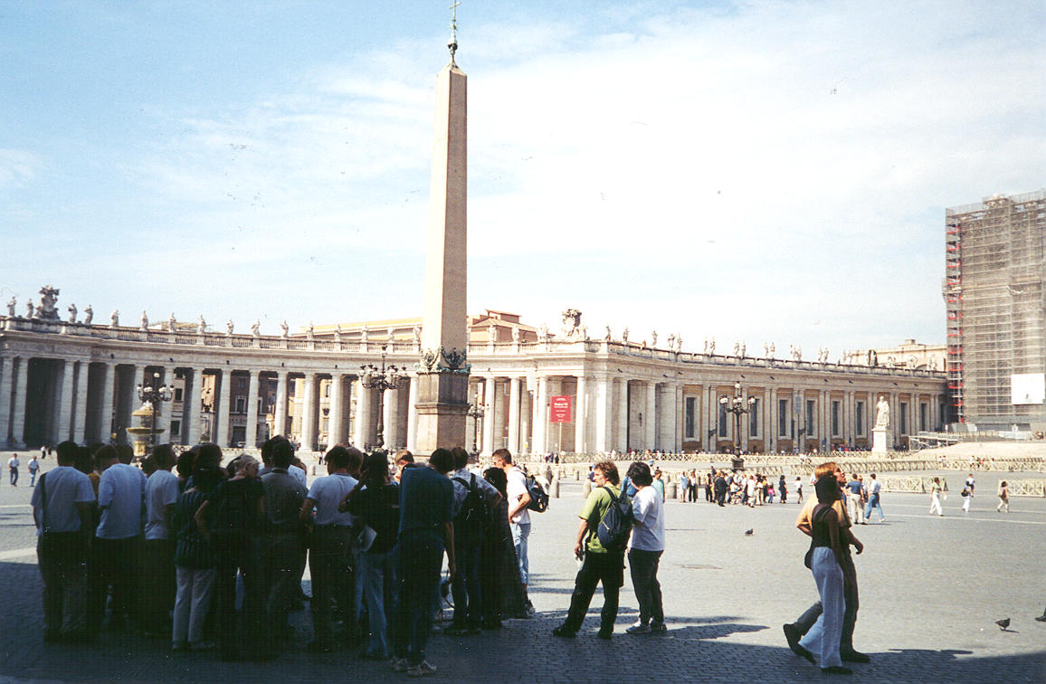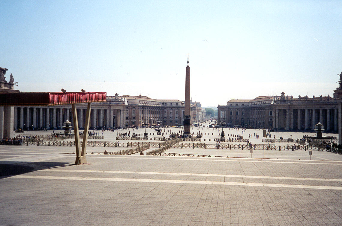 ++ Atop the steps, we get another view down at the piazza. This is the view that the Pope often sees when speaking to the masses. (Although his masses are a little more crowded than mine here...) |