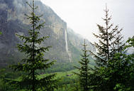 ++ Trummelbach. 10 glacier-waterfalls inside the mountain made accessible by tunnel-lift and illuminated. The Trummelbach alone drains the mighty glacier defiles of Eiger (3970 m), Monk (4099 m) and Jungfrau (4158 m) and carries 20.200 tons of boulder detritus per year. Its drainage area is 24 km2, half of it covered by snow and glaciers. Up to 20.000 litres of water per second. The only glacier-waterfalls in Europe inside the mountain and still accessible. |