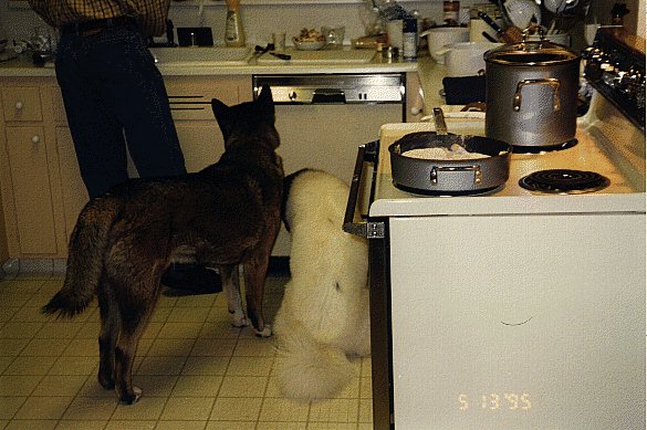 Once a family of six visited New Skete and were interested in a German shepherd and admired the breed, but they were concerned over incidents they had heard concerning children and shepherds. We were surrounded by several grown dogs that we were evaluating together. The father of the family asked the monk who was showing them the dogs, "What is the point of a good breeding program?" At this point, a three-year-old toddler waddled over to one of the shepherds, grasped its tail, and gave it a good jerk. The surprised dog moved a few inches, turned, and licked the child's face. The monk turned to the father of the family. "That," he said, "is the point of a good breeding program."